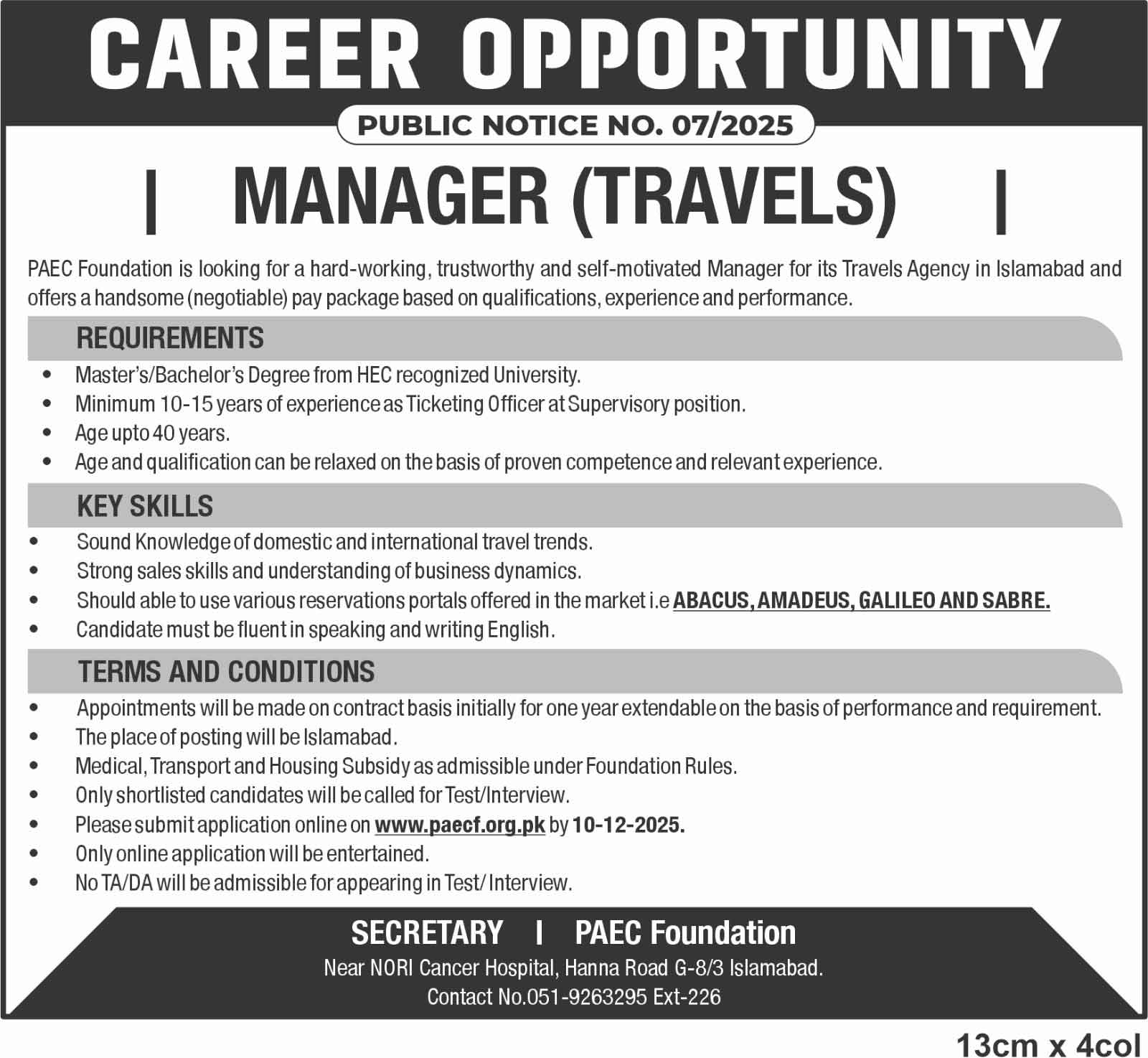 - Please submit application online on paecf.org.pk by 10-12-2025.