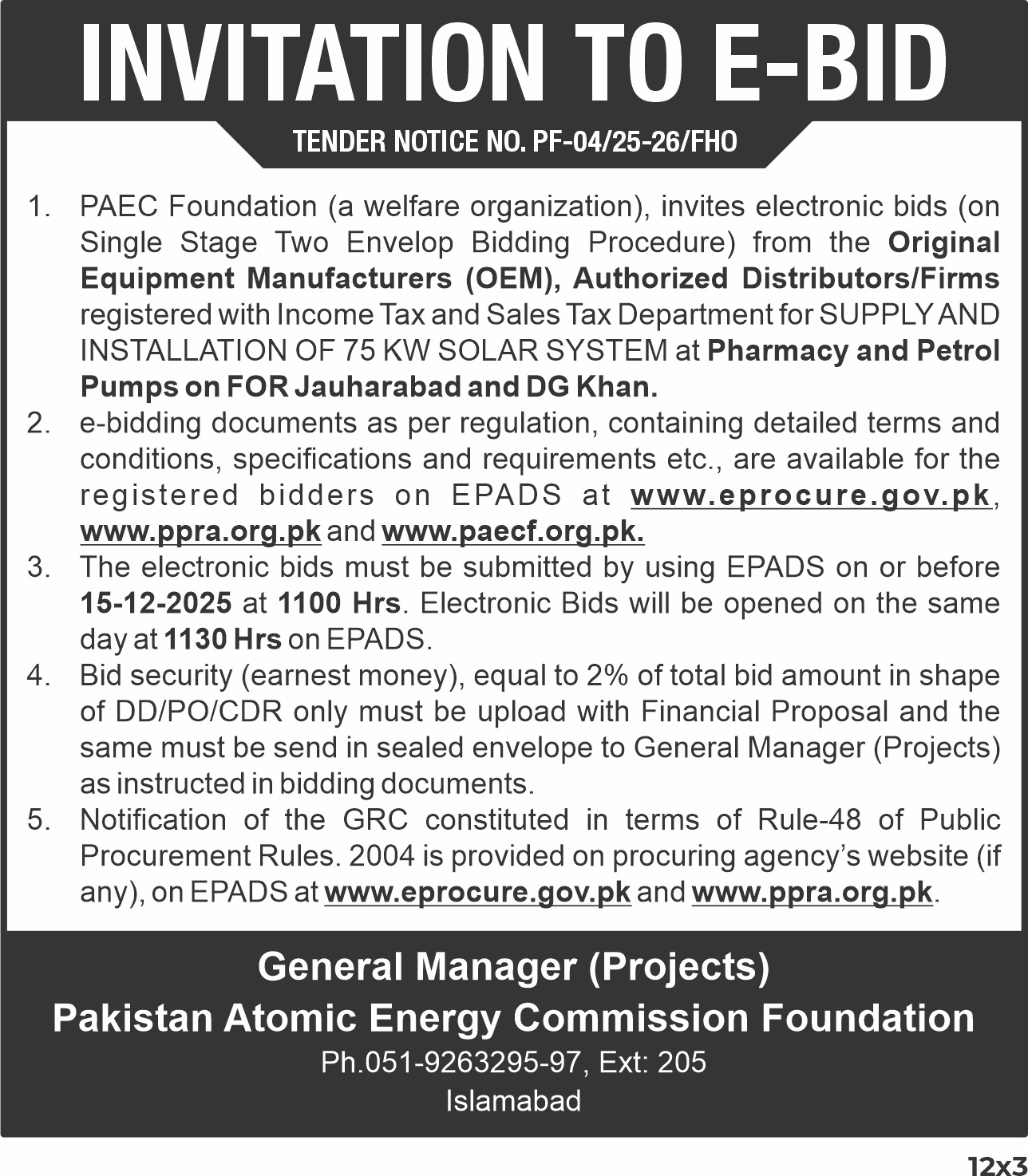 Minutes of the pre Bid Meeting for Supply & Installation of 75KW ON GRID Solar System